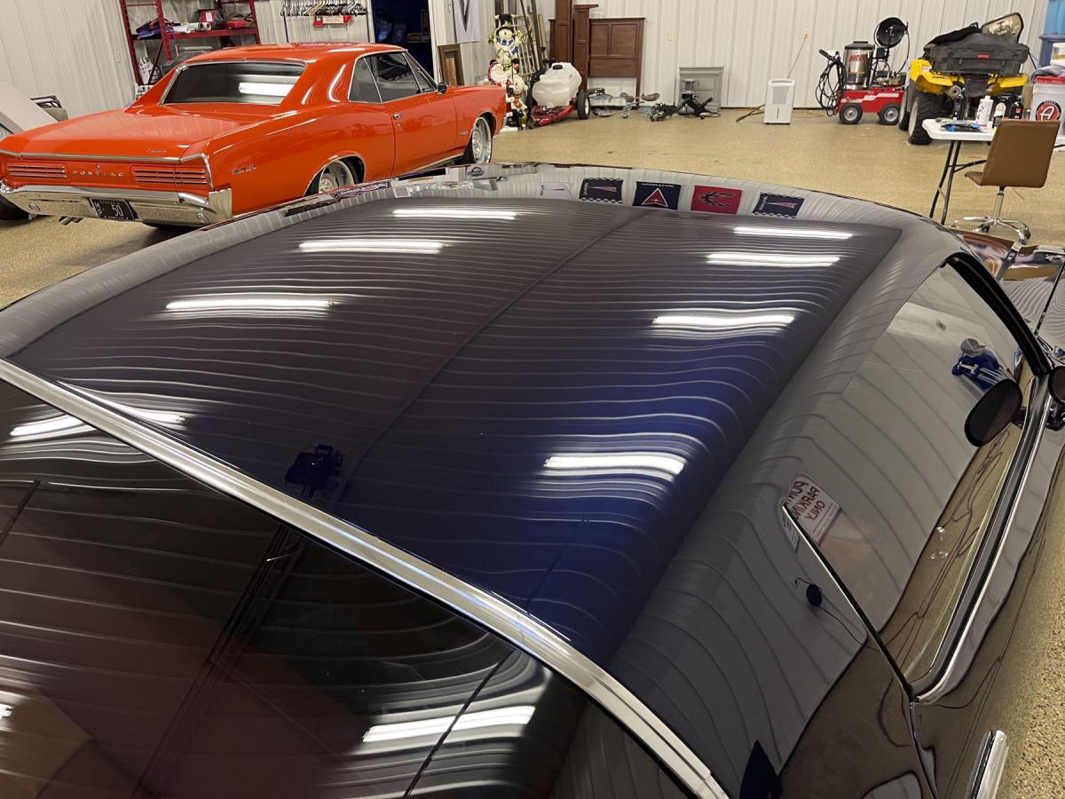 We needed to create enough heat to cut through the sanding marks without compromising the thickness of the clear coat. Once this process was completed, we began testing different types of pads and polishes as well as numerous different speeds until we found the best hybrid to produce the most gloss out of this paint job.
